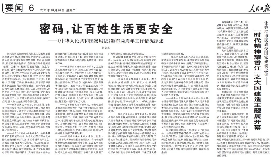在《中华人民共和国密码法》颁布两周年之际,人民日报和新华社刊文《密码,让百姓生活更安全》专题文章,文章从密码在各行各业的应用情况着手,展示了密码护航百姓生活的生动实践。那么,在“互联网+政务”中,密码扮演着怎样的角色呢?来看看新华社和人民日报怎么说!
