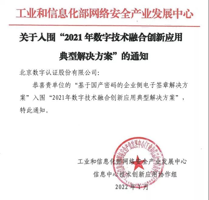 日前,由工业和信息化部网络安全产业发展中心(工业和信息化部信息中心)、信息中心技术创新应用协作组主办的“2021年数字技术融合创新应用解决方案”评选工作顺利完成,北京bsports官网 必一运动股份有限公司(简称“bsports官网 必一运动”)“基于国产密码的企业侧电子签章解决方案”入围典型解决方案。