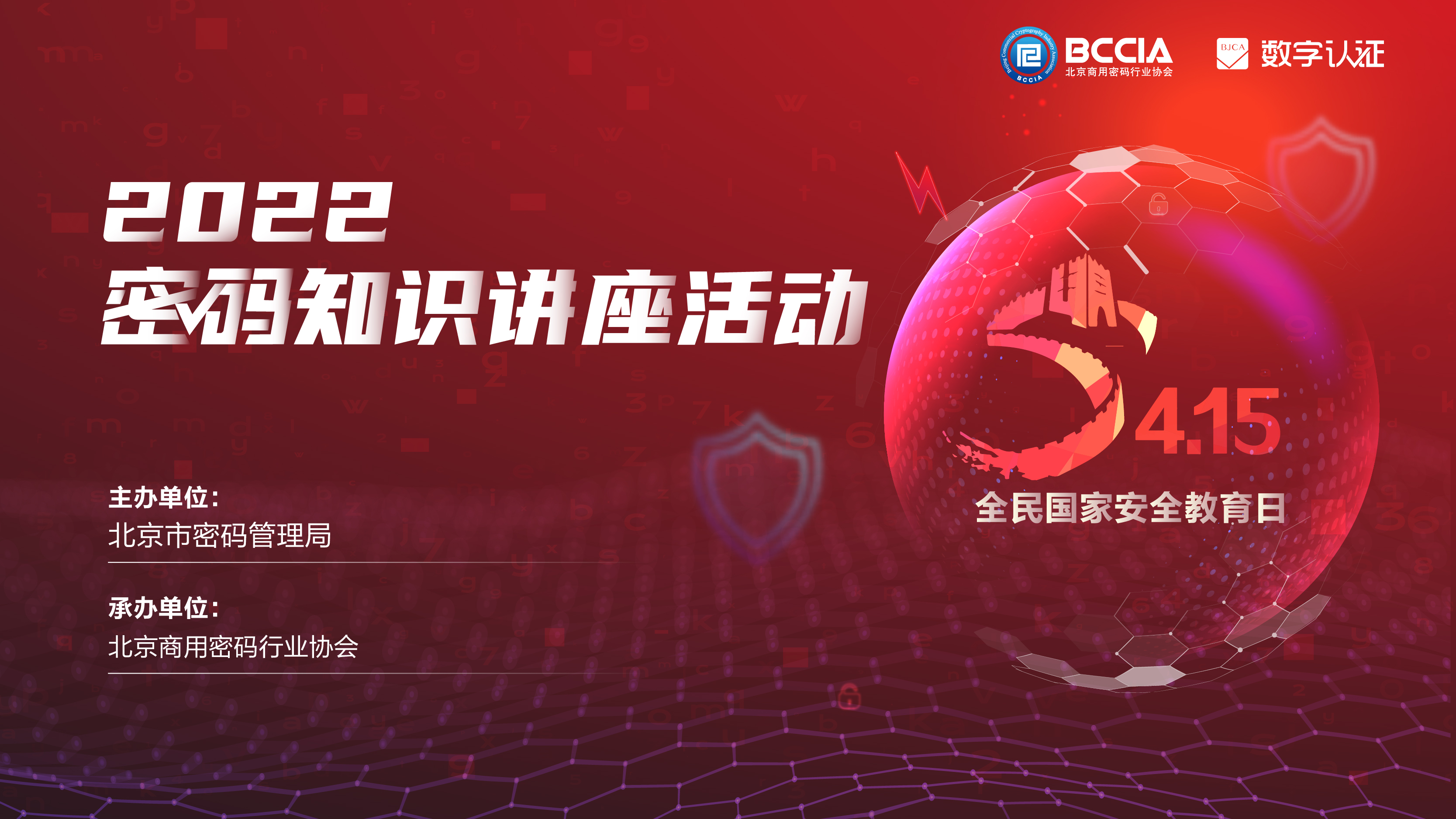 2022年4月15日是第7个全民国家安全教育日,为提高全民国家安全意识,自觉维护国家安全,4月13日,由北京市密码管理局、北京商用密码行业协会共同主办的“2022密码知识讲座活动”在线开讲。北京bsports官网 必一运动股份有限公司(以下简称“bsports官网 必一运动”)研究院院长夏鲁宁博士受邀带来了一场主题为《密码基本知识及我国密码事业的发展》的精彩密码科普讲座。