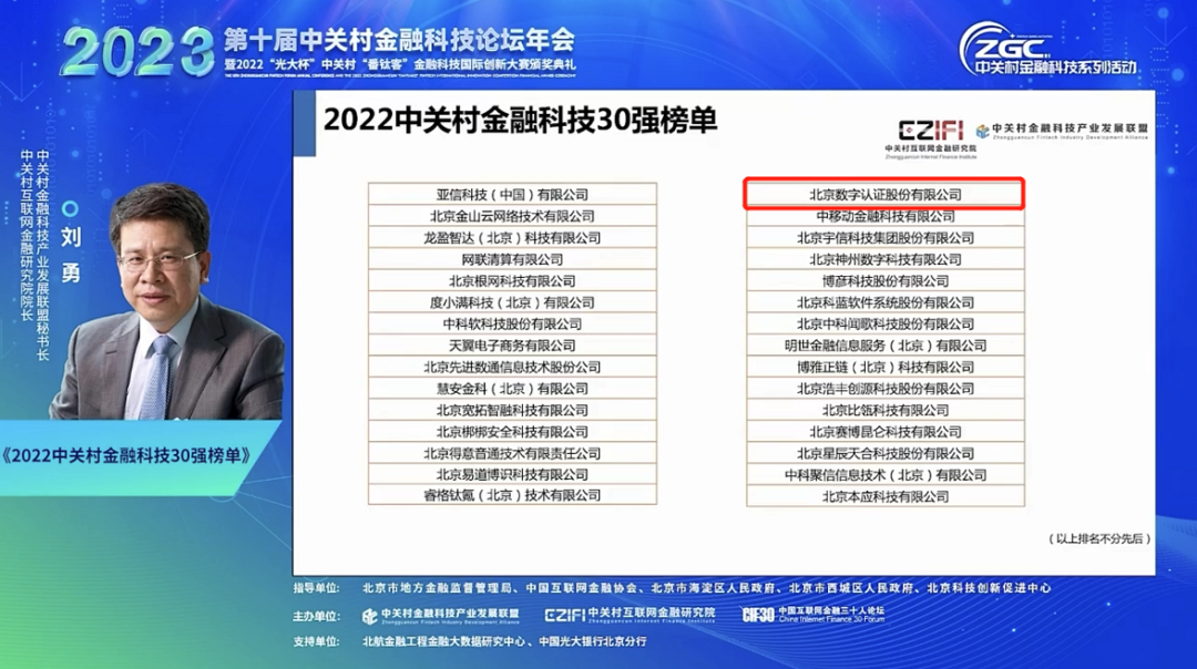 “2022中关村金融科技30强榜单”于第十届中关村金融科技论坛年会重磅发布