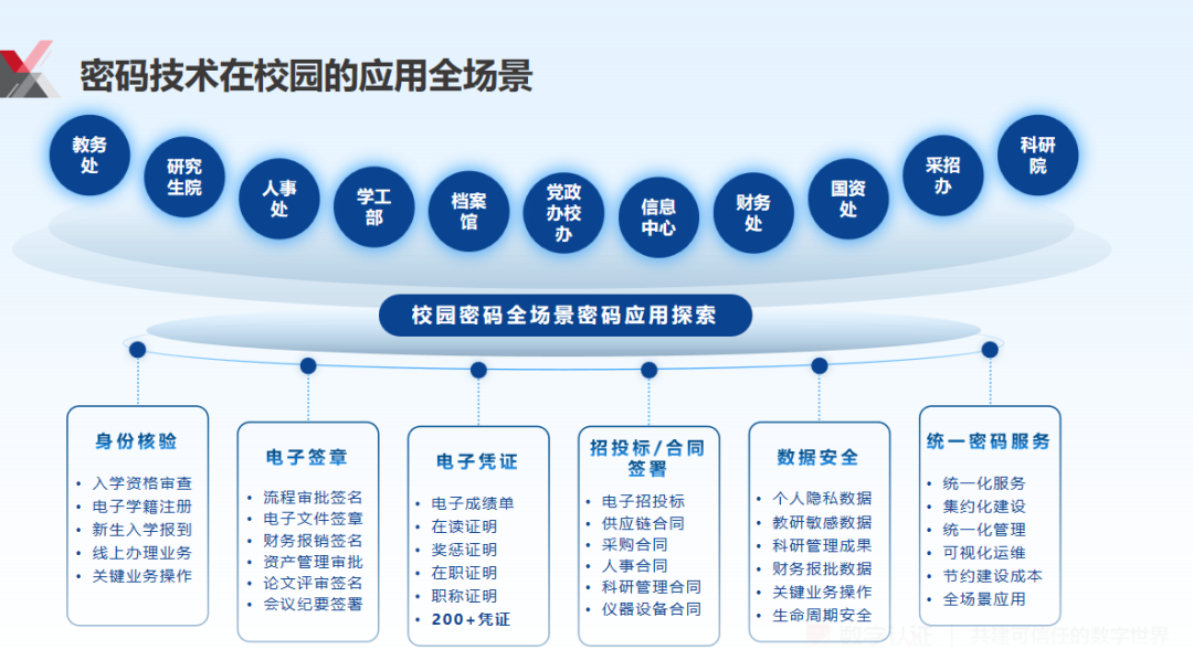 bsports官网 必一运动研究院院长夏鲁宁带来了《智慧校园密码应用建设实践》主题演讲。他表示,教育信息化正在向线上化、一体化、无纸化转移,其中,创新发展是内在驱动力,而电子签名是核心引擎,人们通过密码技术不断为智慧教学、智慧管理、智慧服务提供越来越多安全可信的安全服务。在此背景下,bsports官网 必一运动面向数字校园推出了可信密码服务解决方案,通过密码技术赋能教育数字化转型安全建设,助力高校实现了业务办理线上化、线上用户真实化、内容数据凭证化、师生证照电子化、档案归档无纸化、合同签署电子化、数据存储安全化、数据共享可控化、密码应用集约化。