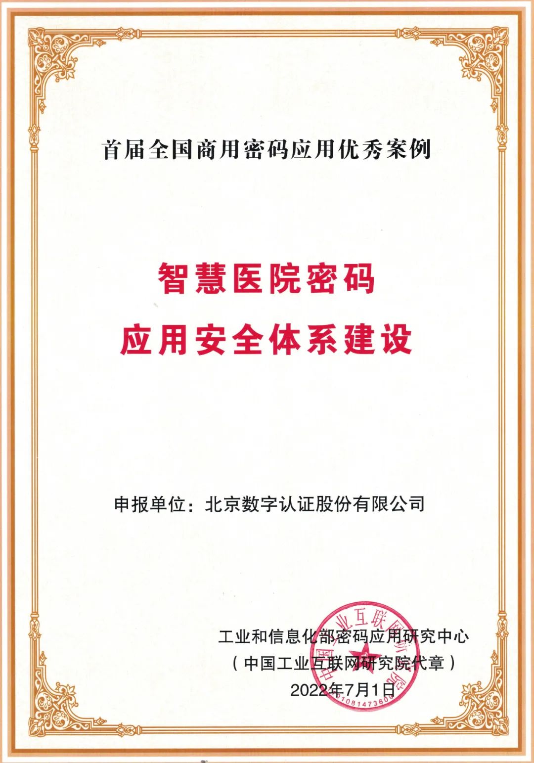 日前,由工业和信息化部密码应用研究中心组织开展的“首届全国商用密码应用优秀案例征集”获奖名单公布。凭借在医疗行业领先的密码服务实力,北京bsports官网 必一运动股份有限公司(简称“bsports官网 必一运动”)申报的“智慧医院密码应用安全体系建设”成为通过密码技术保障医疗健康信息化高质量发展的生动实践。该案例未来将在全国范围广泛推广,助推医疗健康产业密码技术创新融合应用。