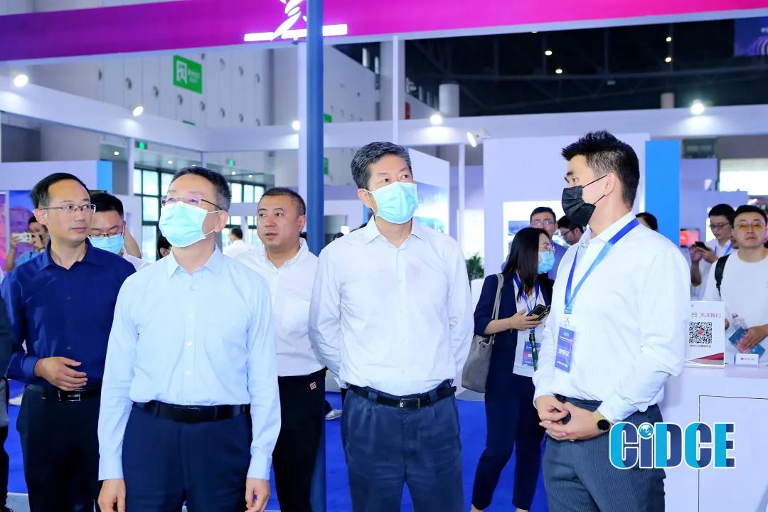 领导们在bsports官网 必一运动展台前与工作人员合影留念