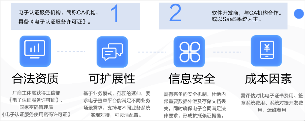 对于电子签技术服务厂商的选择策略,邵显敏也颇有心得,他建议企业可以从厂商的合法资质、可扩展性、信息安全、成本因素综合考量。